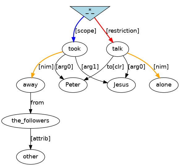 Examples (11.17) and (11.19) are the same sentence annotated in two different ways: (11.17) has IP-INF, while (11.19) has IP-INF2. This difference alters who the talker is and the choice of resolution for the instance of him.