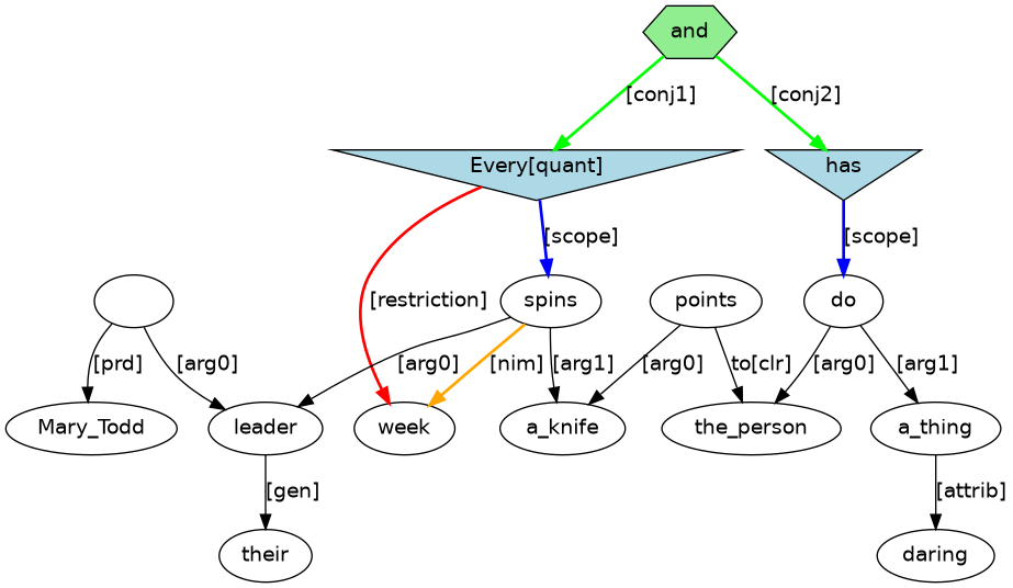 The anaphoric connection in (11.3) gives the indefinite a knife too have wide scope over Every week.