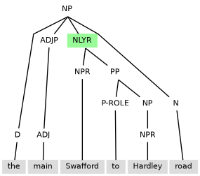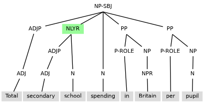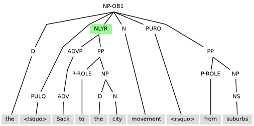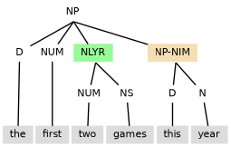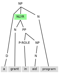 When there is need for structure internal to the noun phrase annotation, NLYR is used.