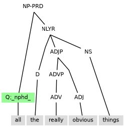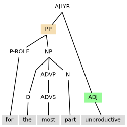 ADJP can act as modifiers of a noun phrase head. In doing so, they are said to have attributive function. With the annotation, an attributive ADJP occurs without a tag extension, as in (3.57) and (3.58), since placement under NP unambiguously captures the attributive function.