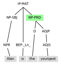 As an example of noun phrase head ellipsis, consider (3.1), with its predicative noun phrase (NP-PRD) lacking a head noun. In a context discussing siblings, Alan is understood to be the youngest sibling.