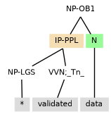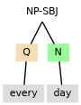 While there is no additional marking to indicate the noun ellipsis in the annotation of (3.1), the overall structure gives this information, since there is a noun phrase projection that does not contain a head word.