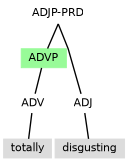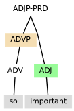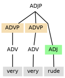 Instances of ADJP can have various dependents which modify the head, such as adverb phrases (ADVP), preposition phrases (PP), or clauses.