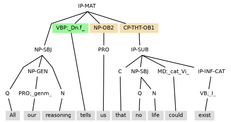 [Tf] is the code used to mark a monotransitive verb in clause structure with the monotransitive verb + a direct object that is a that-clause (CP-THT-OB1).