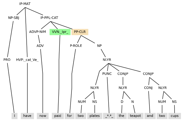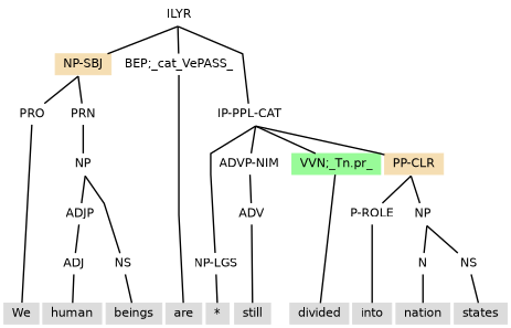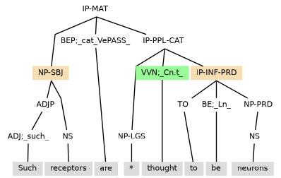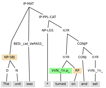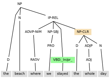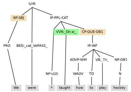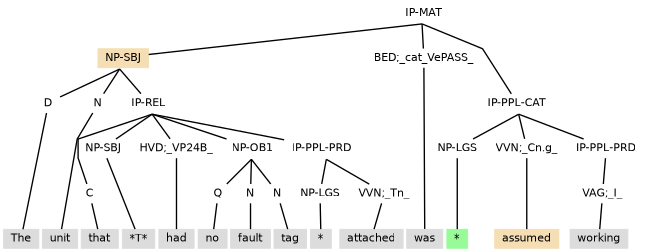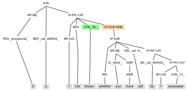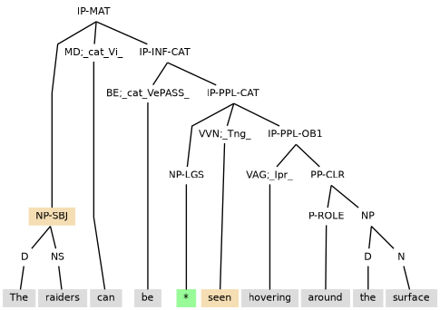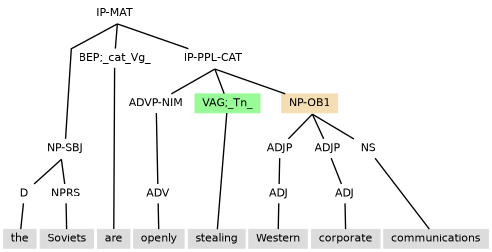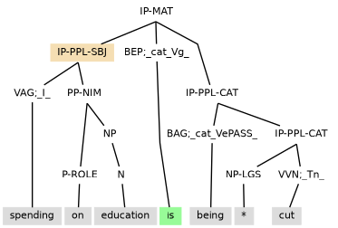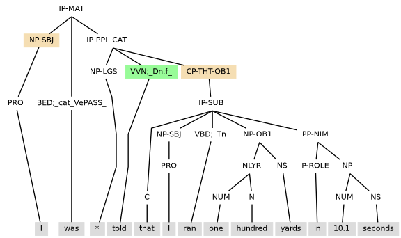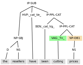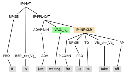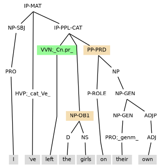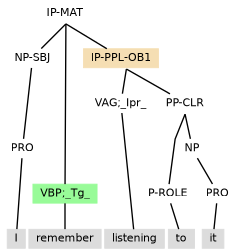 | g | participial clause ({ing} form) (IP-PPL with verb tagged VAG) |