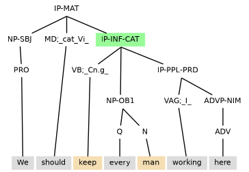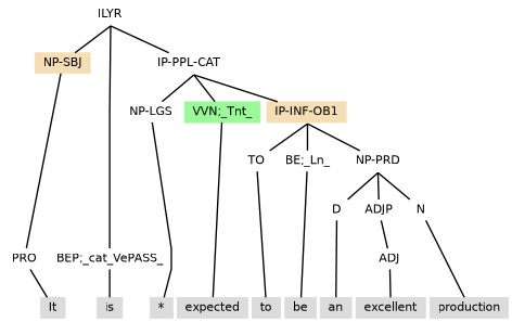 [It] is the code used to mark an intransitive verb in clause structure with the intransitive verb + a closely linked to-infinitive clause. With the annotation, the to-infinitive clause is function marked as being closely related (IP-INF-CLR), as in (7.18).