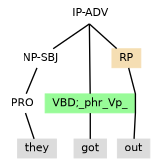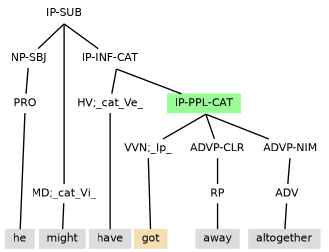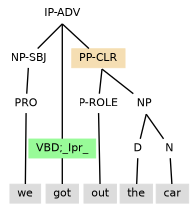 [Ip] is the code used to mark an intransitive verb in clause structure with the intransitive verb + a post-verbal selected adverbial particle. The verb is closely linked in grammar and meaning to the adverbial particle.