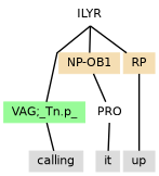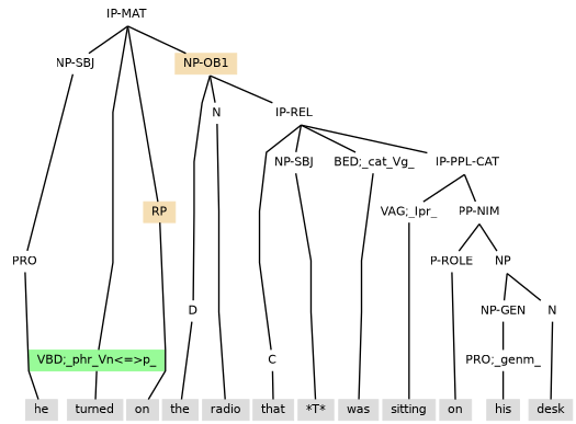 [Tn.p] is the code used to mark a monotransitive verb in clause structure with the monotransitive verb + a direct object that is a noun phrase (NP-OB1) + a selected adverbial particle.