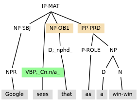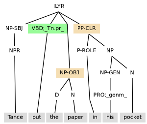 | L | LINKING verb | is associated with a subject predicative (-PRD), an element which provides information about the subject of the clause. | |