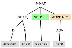 | i | non-finite clause (bare infinitive) (IP-INF with verb tagged VB but no TO tagged word) |