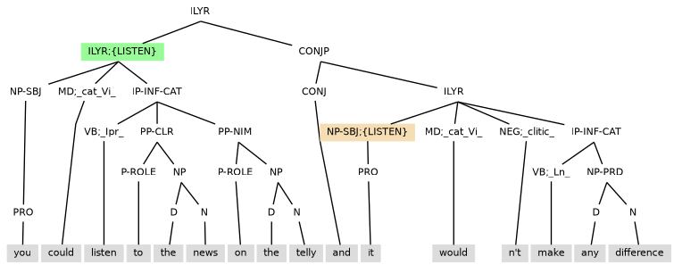 Example (9.3) has pronoun it with the witness information of ;{LISTEN}.